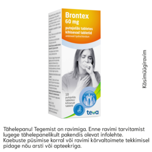 Köha vastu Brontex 60 mg kihisev tablett N10 Brontex 60 mg kihisev tablett N10 Toimeaine:Ambroxoli hydrochloridum Brontex Rohkem »