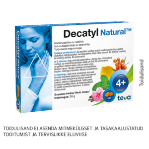 Decatylen™ 0,25 mg/0,03 mg losengid N40 Toimeaine:Dekvaliinkloriid/tsinhokaiinvesinikkloriid Käsimüügiravim:Decatylen (dekvaliinkloriid/tsinhokaiinvesinikkloriid)