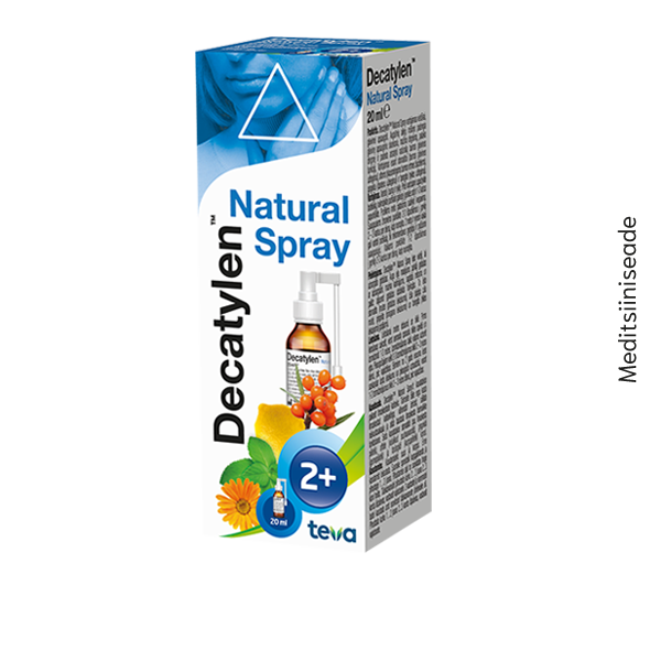 Toimeaine: Rapsiseemneõli (Brassica napus), astelpajuõli (Hippophae rhamnoides), saialilleõli (Calendula officinalis), piparmündi eeterlik õli (Mentha piperita), sidruni eeterlik õli (Citrus limon) Meditsiiniseade: Decatylen™ Natural Spray`d kasutatakse paikselt limaskestade kaitseks ning abistava vahendina suu ja kurgu põletikust tingitud sümptomite leevendamisel. Taimsete õlide segu katab limaskestad kaitsekihiga, vähendab ärritust, säilitab niiskustasakaalu ja aitab taastada limaskesta loomulikke funktsioone. Seda kasutatakse stomatiidi (suu limaskesta põletik), aftide (valulikud suuhaavandid), gingiviidi (igemepõletik) ja farüngiidi (kurgupõletik) korral. Lastele alates 2-aasta vanusest ja täiskasvanutele.